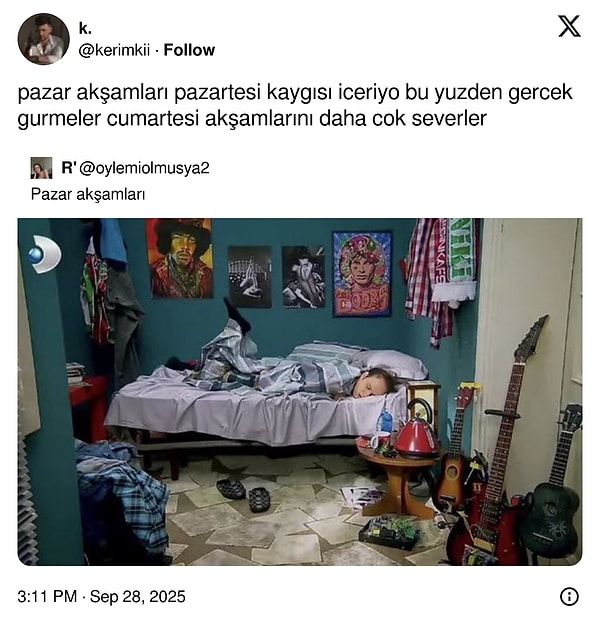 Twitter, yani X’te yapılan komik paylaşımlar tüm sosyal medyayı besliyor. Buradan çıkan paylaşımlar farklı mecralarda bile insanları güldürüyor. Bu da bu mecrayı mizahın en önemli kaynağı haline getiriyor. Havaların ani soğuması, anne babaların mistik yazışmaları derken her gün olduğu gibi bugün de akımlarıyla, şakalarıyla mizahın kalbi hızlı attı. Bakalım Pazartesi günü hangi paylaşımlar öne çıkmış?
