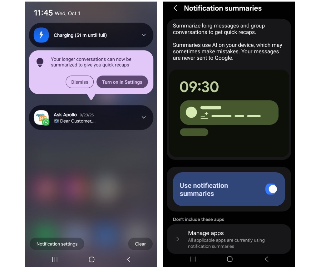Galaxy S25 Ultra için yeni One UI 8.5 yazılımında ortaya çıkan Galaxy AI destekli bildirim özeti özelliği ilginç bir şekilde şimdilik çalışmıyor. Ancak One UI 8.5’te bildirim panelini ilk kez aşağı çektiğinizde, özelliği açıklayan bir açılır pencere karşınıza çıkıyor. Ayarlar menüsünde hangi uygulamaların bildirim özetlerinden hariç tutulabileceği seçeneği de yer alıyor. Bu özellik, tıpkı One UI’deki diğer AI işlevleri gibi Google Cloud altyapısına dayanacak, böylece resmi güncelleme yayınlandığında sorunsuz çalışması bekleniyor. Öte yandan One UI 8.5, uygulama simgelerinde de görsel bir yeniliğe gidiyor. Samsung, One UI 7.0 ile başlattığı renk geçişli simge tasarımını 8.5 sürümünde daha üç boyutlu bir görünüm ile güncelliyor. Sızan dahili sürümler, simgelerde gölge ve eğrilik kullanılarak hem stok uygulamalara hem de üçüncü parti uygulamalara 3D etkisi verildiğini ortaya koyuyor. Ancak bu değişiklik, tüm simgelerde henüz uygulanmış değil ve Samsung’un nihai sürümde bu tasarımı benimseyip benimsemeyeceği kesinleşmiş değil.